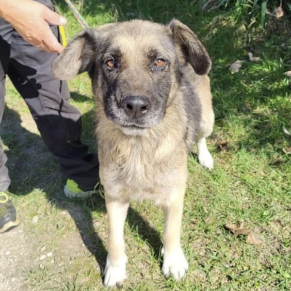 Mertin ist bereits vor etwa fünf Jahren an einem Baum gekettet in einem Wald gefunden worden, kam in unser Partnertierheim und hat dann sehr schnell ein Zuhause in Ungarn gefunden.