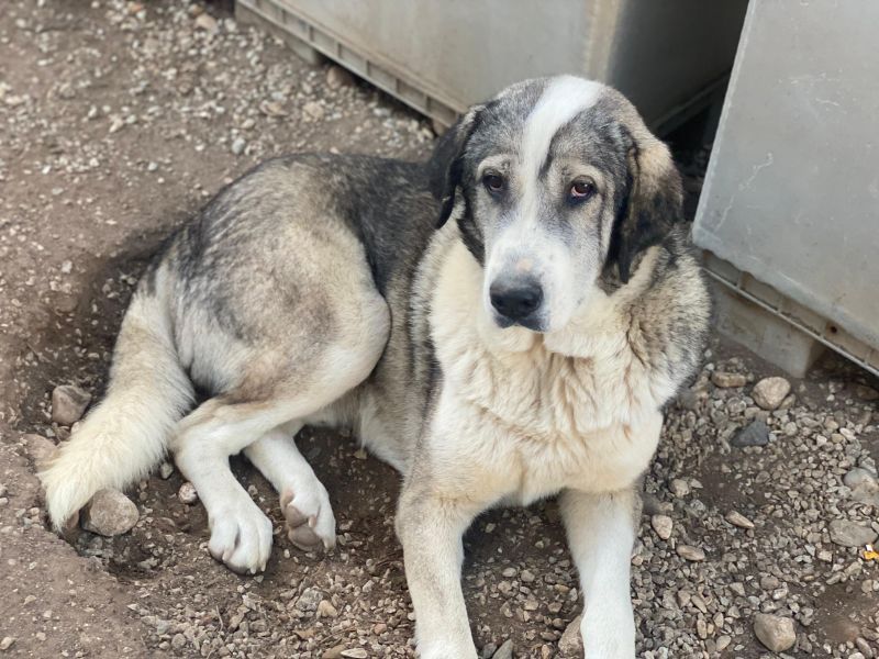 Torac ist ein großer und kräftiger Rüde mit einer wunderschönen Fellzeichnung in Weiß, Creme und Schwarz. Er hat sanfte braune Augen, die sein gutmütiges Wesen unterstreichen. Von den HelferInnen vor Ort wird er als sehr freundlich und lieb beschrieben. Mit den anderen Hunden im Tierheim zeigt er sich bisher verträglich und würde sicher auch mit einem bereits vorhandenen Vierbeiner zurechtkommen. Für Torac wünschen wir uns verantwortungsbewusste Menschen, die ihm Zeit geben, sich in seinem neuen Umfeld zurecht zu finden. Neben viel Liebe und Aufmerksamkeit wird eine konsequente Erziehung mit klaren Regeln unerlässlich sein, damit Torac nicht die Führung übernehmen muss. Wir sind uns sicher, dass er an der Seite passender Menschen zu einem wundervollen vierbeinigen Freund aufblühen kann.