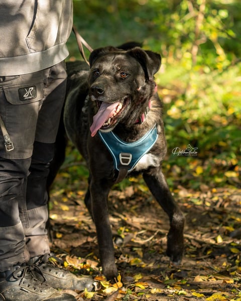 Oreo ist ein sehr lernfreudiger und aufgeweckter Rüde, der besonders viel Freude am Schnüffeln hat. Beschäftigungen wie Mantrailing, Fährtensuche oder Dummytraining könnten genau das Richtige für ihn sein – sind aber kein Muss.