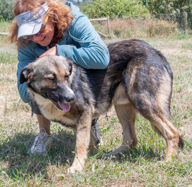 Dürfen wir vorstellen: Angelo, ein Mischlingsrüde, geboren 2024, mit einer Schulterhöhe von 65 cm. Er wurde im Wald ausgesetzt und lebt derzeit in einer privaten Pflegestelle in Portugal.