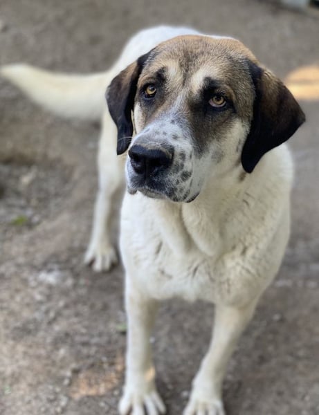 Aufgrund ihrer Größe und optischer Merkmale kann es sich bei Elliot um einen Herdenschutzhund-Mischling handeln. Gern informieren wir Sie in einem persönlichen Gespräch über die besonderen Eigenschaften dieser wunderbaren Tiere.
