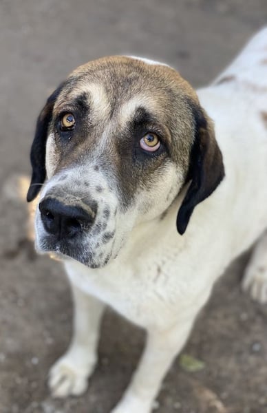 Elliot ist eine große und kräftige Hündin mit einer sehr hübschen Fellzeichnung. Ihr weißes Fellkleid ist besonders am Rücken mit vielen braunen Punkten übersäht. Sofort fallen ihre hellbraunen Augen auf, die leider ziemlich traurig in die Kamera blicken. Das können wir jedoch gut verstehen, denn das Leben im Tierheim ist wirklich stressig für die Hunde. Elliot sehnt sich nach einem schönen Zuhause bei liebevollen und geduldigen Menschen, die ihr die Zuneigung und Aufmerksamkeit schenken, die sie verdient. Unsere HelferInnen erleben die Hündin stets freundlich und lieb. Auch mit ihren Artgenossen kommt sie gut zurecht. Das Laufen an der Leine ist Elliot scheinbar auch nicht unbekannt, so dass die Vermutung naheliegt, dass sie bereits ein Zuhause gehabt hat. Alles in allem bringt die nette Hundedame somit gute Voraussetzungen mit, die ihr bei der Eingewöhnung helfen können. Sicher wird vieles neu für sie sein und auch das Leben in vier Wänden ist ihr womöglich ebenfalls nicht vertraut. Daher braucht es gerade zu Beginn Ruhe und Zeit, um sie Schritt für Schritt an alles zu gewöhnen. Auch einiges zu lernen gibt es noch, damit das Zusammenleben so harmonisch wie möglich abläuft. Elliot ist kein kleiner Welpe mehr, hat jedoch noch fast ihr ganzes Leben vor sich, das sie zu gern als geliebtes Familienmitglied verbringen würde.