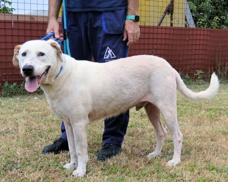 Im Mai 2017 hat Plutarco das Licht der Welt erblickt. Wer seine Mutter ist und ob er Geschwister hat, ist nicht bekannt. Ob er einst ein Zuhause hatte, in dem er geliebt wurde, das wissen wir nicht. Wie er seine ersten zwei Lebensjahre verbracht hat, das werden wir wohl nie erfahren. Aber wie der ca. 7-jährige Plutarco seine letzten 5 Lebensjahre verbracht hat, das wissen wir sicher, denn im Juni 2019 kam er an dem Ort an, wo kein Hund hinmöchte. Seit 5 Jahren ist ein hiesiges italienisches Lager der Platz, wo er tagtäglich aufwacht und einschläft. Jeder trostlose Tag läuft an ihm vorbei. In seiner grauen Betonzelle sitzend, wartet er darauf, dass sich sein Leben ändert. Ohne Freunde, da er auf Vierbeiner verzichten mag, aber voller Hoffnung darauf, dass es da draußen irgendjemanden gibt, der sich für ihn interessiert, wünscht er sich, seine triste Zelle verlassen zu können.