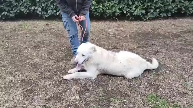 Groß, weiß, strubbeliges Fell, im besten Alter und mit Schalk im Nacken: Das ist unser liebster Ozlo, unser Ozlo-Riesenbaby. Mit seinen knapp sechs Jahren (Stand Januar 2025) ist er für seine Größe zwar schon ein gestandener Hund, aber bei den sehr seltenen Besuchen der Tierschützer zeigt er sich jedes Mal von seiner aufgeweckten, lebensfreudigen und sehr energiegeladenen Seite. Fast wie ein Welpe oder Junghund, nur eben etwas groß geraten.