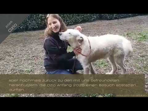 Aber nochmals zurück zu den mit uns befreundeten Tierschützern, die Ozlo Anfang 2025 einen Besuch abstatten durften. Geradezu euphorisch habe er sich über die unerwartete Abwechslung gefreut, erzählten sie uns. Er sei unglaublich energiegeladen und sehr neugierig. Und er sei sofort und ohne zu zögern auf die ihm unbekannten Menschen eingegangen und habe Null Berührungsängste gezeigt. An der Leine gehen sei noch ausbaufähig, aber wen wunderts: Endlich mal raus aus der Enge des Käfigs und kurz auf eine Wiese, wie muss sich das für einen Hund nach all den Jahren anfühlen…
