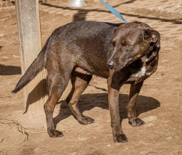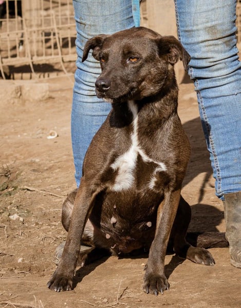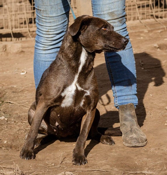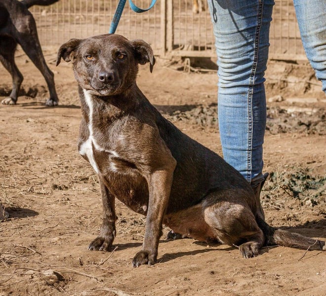 ich bin Aliz, eine junge Mischlingshündin der Kategorie Midi, ich habe kurzes, pflegeleichtes Fell in Schokobraun mit einem weißen Streifen auf der Brust... Meine Ohren sind eine lustige Knickohrvariante, aber meistens trage ich sie schüchtern angelegt, bis ich Vertrauen gefasst habe, dann stelle ich sie auch mal auf und höre aufmerksam zu, was die Pfleger zu mir sagen...
