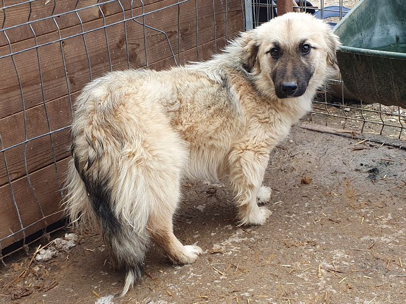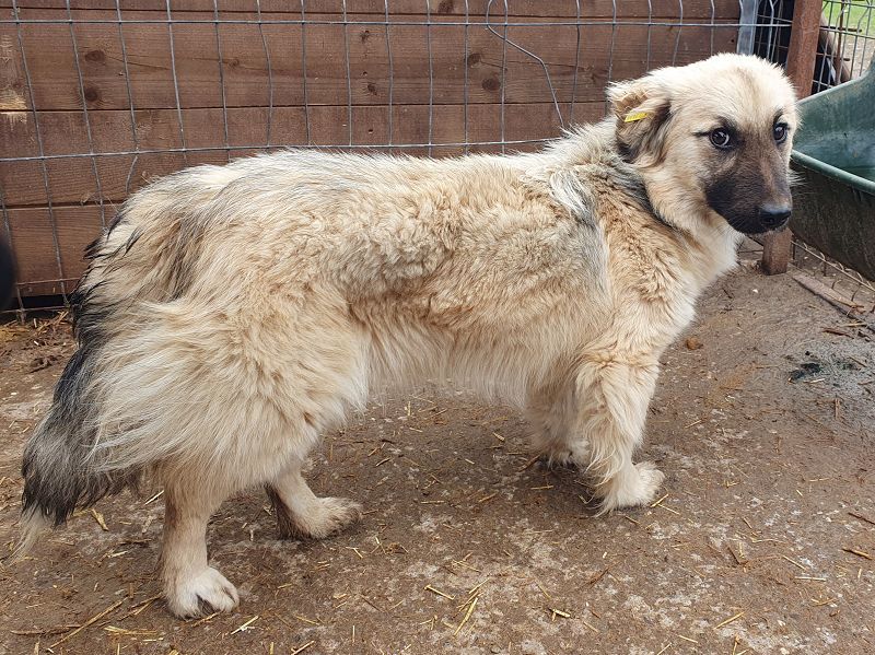 Der unsichere Rüde Frodo im Tierheim Bucov wirkt besonders verletzlich. Möglicherweise ist er unsicher, weil er noch neu im Tierheim ist und uns nicht kannte, oder vielleicht hat er einfach große Angst vor dem Leben im Tierheim. Sein beige-graues, lockiges Fell ist wunderschön und weich, die dunkle Schnauze verleiht ihm ein einzigartiges Aussehen. Er ist mit seinen ca.34cm Schulterhöhe auch noch kleiner viele der anderen Hunde. So bleibt er meistens in einer der Hütten und verlässt diese nur ungern. Wir konnten ihn aber aus der Hütte rausholen und auch eins der Hüttendächer setzen. Er wusste ja nicht, was wir wollten und doch ließ er sich problemlos anfassen und streicheln, aber genießen konnte er das nicht. Sorgenvoll schaute er immer wieder um sich herum was passiert. Danach er zog sich sofort wieder in seine sichere Zuflucht zurück. Auch er leidet unter dem Stress, den ein dominanter Rüde im Zwinger verursacht.