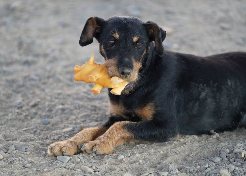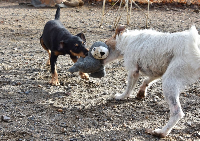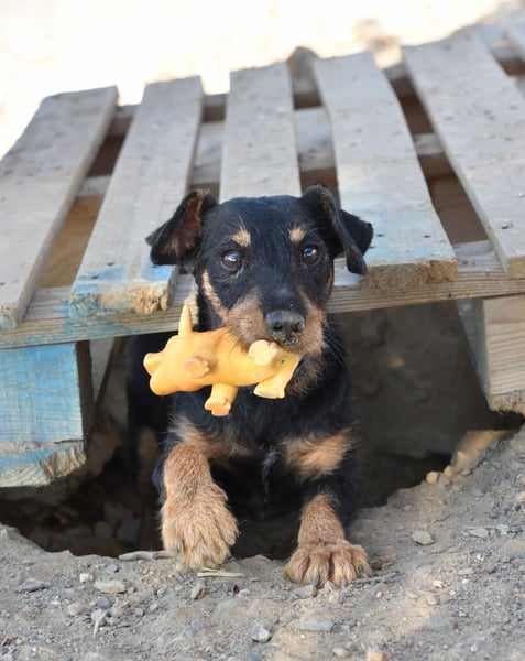 Heute ist Betty perfekt in den Tierheimalltag und das große Hunderudel integriert. Sie kennt alle Abläufe und versteht sich mit allen anderen Hunden sehr gut. Vormittags dürfen während des Saubermachens der Zwingeranlage alle Hunde gemeinsam nach draußen in den Auslauf, hier liebt sie es, mit ihren Spielsachen zu spielen. Sie ist die glücklichste Betty der ganzen Welt, wenn man sich etwas Zeit nimmt, um ihr das Bällchen zu schmeißen. Am allermeisten liebt sie ihr orangenes Schweinchen, das kann sie ausdauernd über den Platz tragen und jedem stolz zeigen.