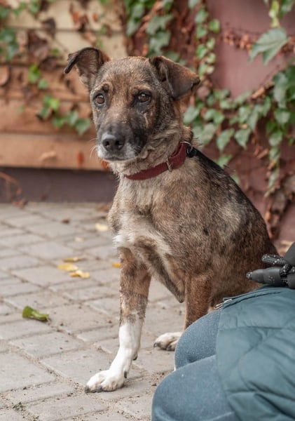 Chapa (etwa 5 Jahre alt und 10 kg) ist eine ruhige und äußert hingebungsvolle kleine Hündin. Sie geht sehr gerne mit ihren Menschen spazieren und genießt deren Aufmerksamkeit. Chapa ist rundum mit allen verträglich.