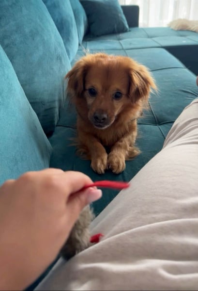 Nacho ist sehr verspielt und hat ein mittleres bis hohes Energielevel. Wenn man sich mit ihm beschäftigt, kann er stundenlang mit seinem Bällchen spielen, am liebsten gemeinsam mit seiner Hundefreundin oder seinen Menschen. Er apportiert gerne und bringt sein Ball immer zum Menschen zurück.