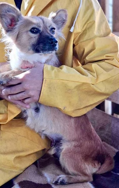 Gemeinsam mit ihren drei Welpen wurde sie ganz allein auf einem Feld gefunden. Ohne Hilfe hätten sie kaum überlebt, aber zum Glück wurden sie rechtzeitig entdeckt und von den TierEngeln in Bukarest in Sicherheit gebracht.