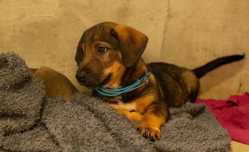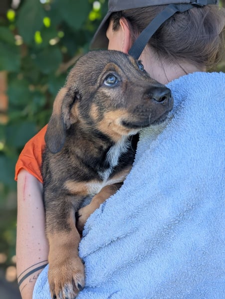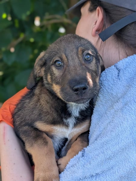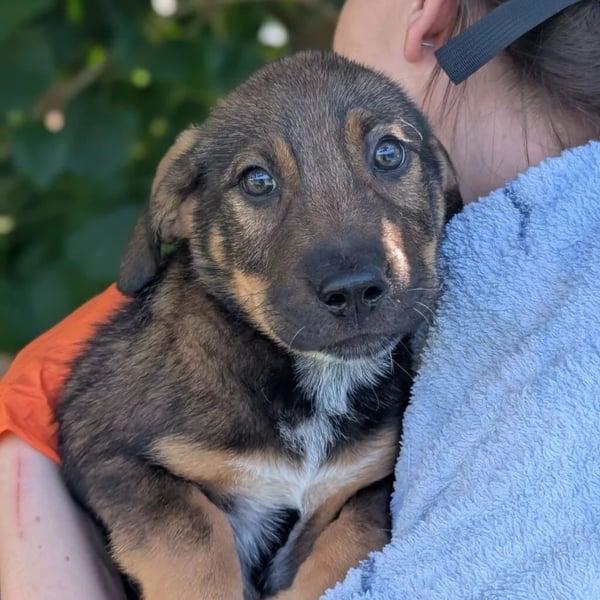 Quinn wurde zusammen mit seinen sechs Geschwistern im August 2025 im Tierheim Free Amely aufgenommen. Die sieben Welpen wurden in der Nähe unserer Kastrationskampagne allein, ohne ihre Mutter, aufgefunden.