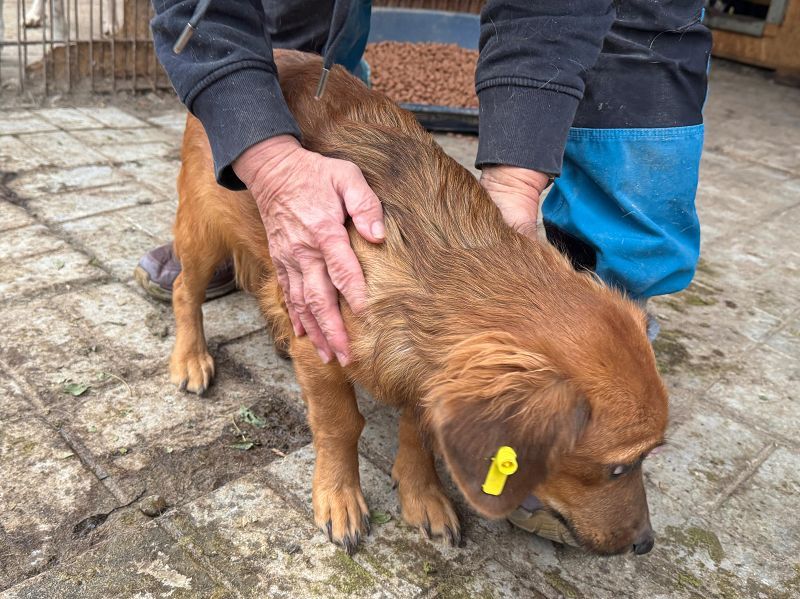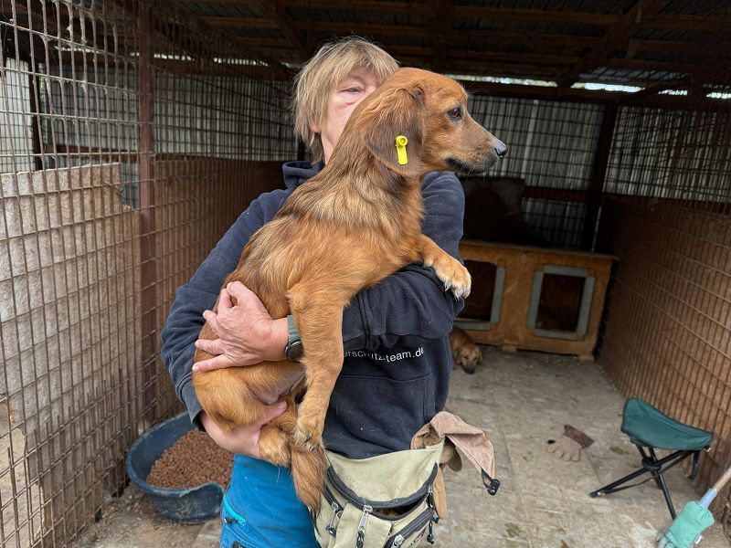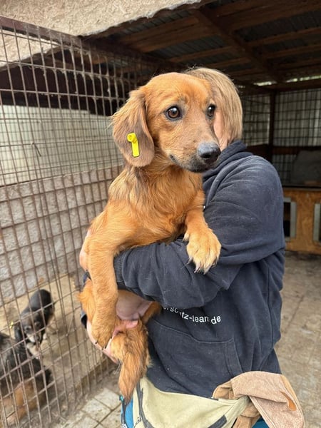 Sarah ist gerade mal 30cm klein und somit auch die kleinste in ihrem Zwinger. Sie hat wunderschönes, rehbraunes und leicht welliges Fell mit etwas hellerer Brust. Momentan zeigt sie sich noch zurückhaltend und etwas unsicher im Umgang mit Menschen und blieb bei unserem Besuch lieber auf Distanz. Dennoch konnten wir die kleine Maus problemlos auf den Arm nehmen und sie hat alles ruhig zugelassen. Wir sind sicher, dass Sarah mit Ruhe, Geduld und einem stabilen Umfeld schnell Vertrauen fassen wir und sich Schritt für Schritt öffnen wird.