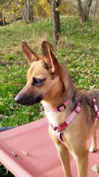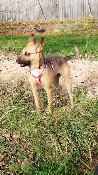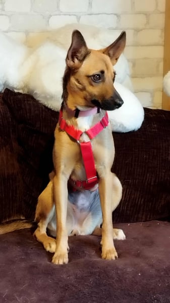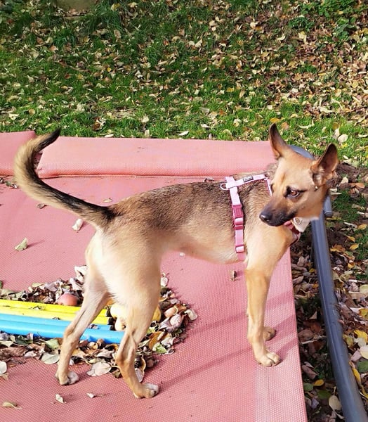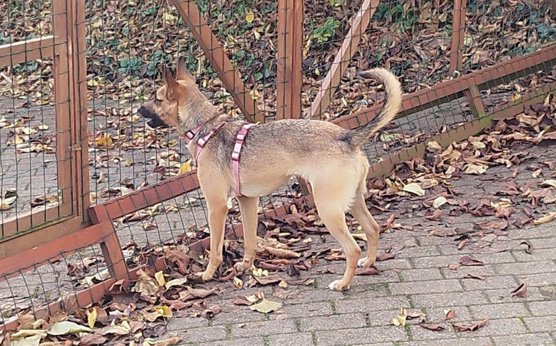 Sie ist eine lebensfrohe und lebhafte kleine Hündin mit einer Schulterhöhe von ca. 41cm, die optisch wie ein eingelaufener Malinois aussieht.