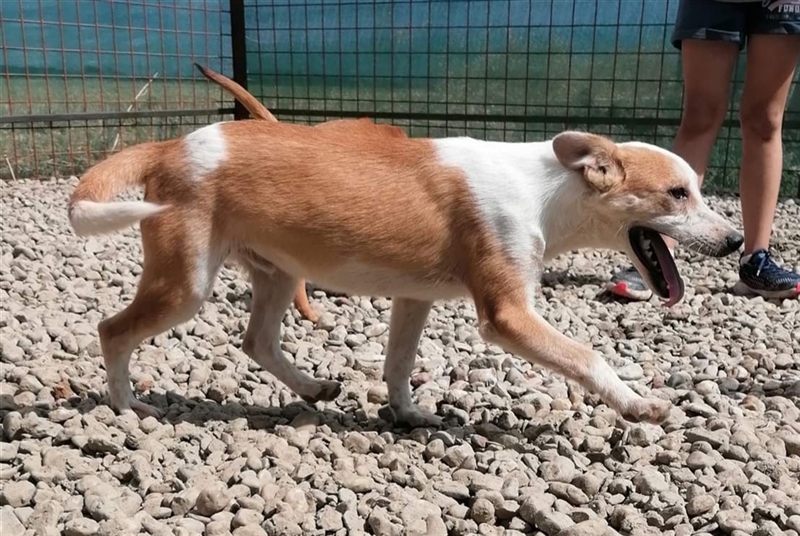 Wann immer jemand auch nur in die Nähe seines Zwingers kam, hüpfte er wie ein Gummi- Ball am Gitter auf und ab - mit wild wedelnder Rute und voller Hoffnung heraus gelassen zu werden.