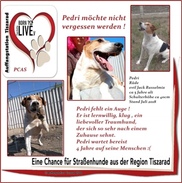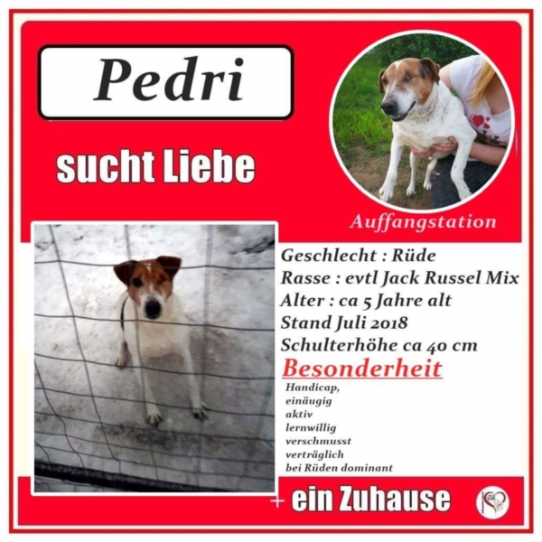 Unser Pedri wurde mit unzähligen Wunden aufgefunden, ein Auge fehlte ihm, das belastet diesen verschmussten, aktiven, intelligente und lernwilligen Hund aber in keinster Weise <3