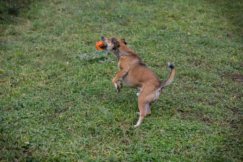 Toben, rennen und Kekse essen, das kann ich alles sehr gut. Der Rüde Maiko (Juni 2023)