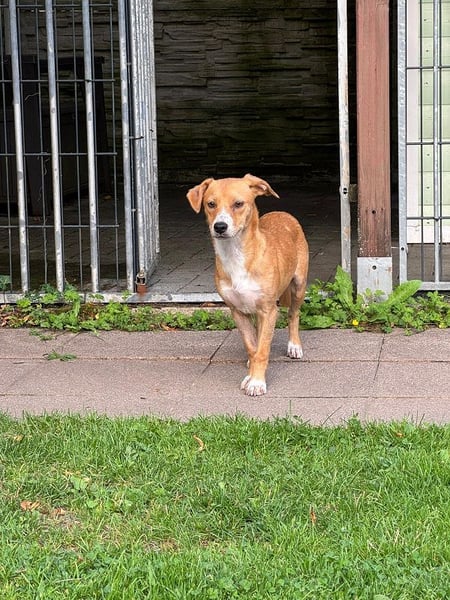 Mila ist eine junge Hündin, die in ihren ersten Lebensmonaten kaum menschliche Nähe erfahren durfte. Als sie zu uns kam, war sie scheu wie ein Reh – vorsichtig, still und stets auf der Suche nach einem sicheren Rückzugsort. Doch mit viel Geduld, Ruhe und liebevoller Zuwendung macht Mila nun jeden Tag kleine, aber wichtige Fortschritte. Sie beginnt, sich den Menschen zu nähern, bleibt gerne in ihrer Nähe und legt sich sogar zum Schlafen daneben. Zwar schreckt sie bei plötzlichen Bewegungen noch zurück, doch sie zeigt deutlich, dass sie bereit ist, Vertrauen zu fassen – Schritt für Schritt. Mila beobachtet aufmerksam, sucht vorsichtig Kontakt und beginnt, immer mutiger, die neue Welt um sich herum kennenzulernen. Das Anlegen von Geschirr und Halsband lässt sie sich gut gefallen, damit bewegt sie sich inzwischen ganz selbstverständlich. Nur die Leine – und vor allem der Mensch am anderen Ende – sind ihr noch unheimlich. Das Laufen an der Leine muss sie noch lernen, aber das Potenzial ist da und es wird täglich geübt. Besonders hilfreich für Mila sind ihre vierbeinigen Gefährten: Sie ist sehr sozial, versteht sich bestens mit anderen Hunden und orientiert sich stark an ihnen. In ihrer Nähe fühlt sie sich sicher und sucht aktiv Schutz bei ihren Hundefreunden. Ein souveräner Ersthund im neuen Zuhause wäre für Mila daher ideal und würde ihr die nötige Sicherheit geben. Für Mila suchen wir erfahrene und geduldige Menschen, die sie in ihrem Tempo ankommen lassen. Menschen mit einem feinen Gespür dafür, wann sie Nähe braucht – und wann etwas Abstand. Mit Verständnis, Ruhe und liebevoller Konsequenz wird Mila sich weiterentwickeln und eines Tages eine wunderbare Begleiterin sein und ihr ganzes Repertoire an guten Eigenschaften entfalten kann- lustig, verspielt, treu und einzigartig.