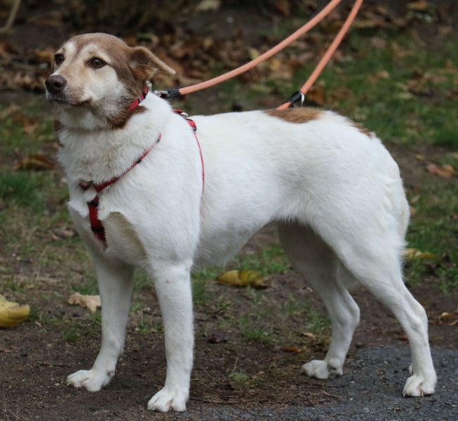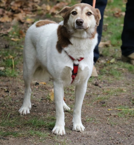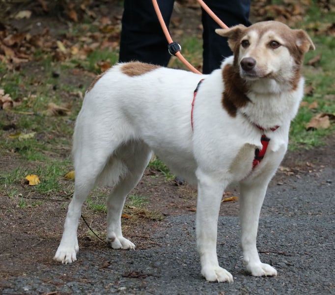 Sie lässt sich das Geschirr ohne Widerstand anziehen und geht recht gut an der Leine. Bei der Gassirunde begegnet sie anderen Hunden ganz gelassen. Vanessa ist eine offene sympathische Hündin, die noch etwas Selbstvertrauen gewinnen muss. Sie ist lernbereit, liebt Menschen und andere Hunde im Haus. Sie kommt mit viel Lebensfreude und Vertrauen auf Menschen zu.
