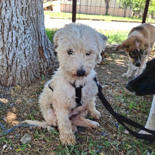 Philly wurde gemeinsam mit Lucky, Thanos und ihrer Mutter Chioni (unter Hündinnen) aus einem alten Lagerhaus gerettet, über das wir bereits berichtet haben. Seit ihrer Rettung lebt sie nun schon einige Zeit im Shelter und hat dort bereits Fortschritte gemacht. Anfangs war sie sehr zurückhaltend und scheu, inzwischen genießt sie jedoch zunehmend die Nähe zum Menschen und lässt vorsichtige Berührungen und Streicheleinheiten zu. Man merkt deutlich, dass sie vieles ihrem jungen Leben noch nicht kennenlernen durfte und daher ein großes Nachholbedürfnis hat. Neue Situationen verunsichern sie anfangs, doch mit Ruhe und Geduld taut sie immer mehr auf.