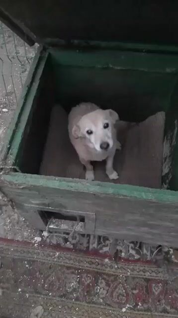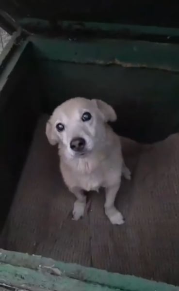 Aleksej in einem Gewerbegebiet, wo sie von anderen Hunden verletzt und von Menschen