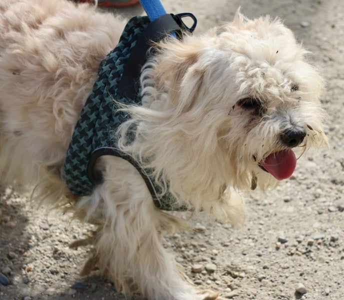Er hatte ein Zuhause, sein Halter verstarb. So wurde er zu uns gebracht. Natürlich geht er zum Friseur