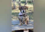 Biene ist ein junger Dackel Mischling. Biene wurde zusammen mit ihrer Mutter Amelie auf der Straße gefunden und zunächst in eine Tötungsstation gebracht. Leider konnte Amelie nicht sofort gesichert werden, da sie zu ängstlich war. Nachdem wir Biene in Sicherheit gebracht hatten, gelang es uns, auch die scheue Amelie zu retten.