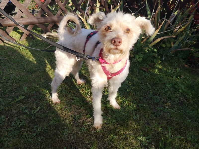 Perla ist eine quirlige, menschenbezogene, liebe und aufgeschlossene Hündin, die die Nähe zu ihren Bezugspersonen sehr genießt. Im Haus lebt sie zusammen mit einem Rüden, mit dem sie sich mittlerweile gut versteht.