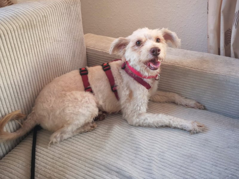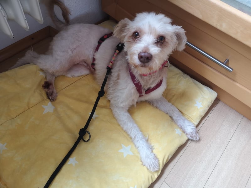 Perla wurde in Italien allein auf der Straße gefunden – ausgesetzt und sich selbst überlassen. Ihr Fell war stark verfilzt und ungepflegt, sodass es leider geschnitten werden musste. Doch eigentlich trägt Perla ein längeres Fell.