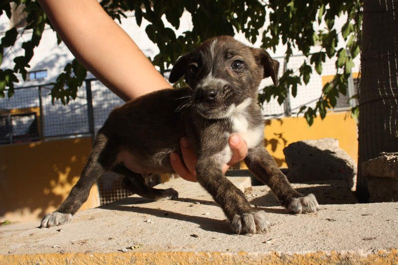 Ein Mädchen fand den Korb, schlug Alarm und brachte alle fünf Hundebabys sicher in eine Pflegefamilie, wo sie liebevoll aufgepäppelt und aufgezogen werden. Einer dieser kleinen Rabauken ist Brösel. Wie auch seine anderen Geschwister, ist er ein wirklich hübscher kleiner Kerl, der entsprechend seines Alters aktuell genau drei Dinge tut – und dies in recht konstanter Reihenfolge: Mit den Geschwistern toben, fressen, schlafen und dann alles wieder von vorne.