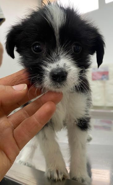 Thelma sieht ihrer ebenfalls schwarz-weißen Schwester zwar durchaus ähnlich, bringt mit ihrem noch dunkleren Fellkleid jedoch einen ganz eigenen Charme mit. Das kleine Knopfauge zeigt sich auf ihrer Pflegestelle sehr freundlich und aufgeschlossen. Darüber hinaus liebt sie es, zu spielen und zu toben, wie es sich für einen Welpen ihres Alters gehört. Wir können derzeit absolut nichts Negatives über das kleine Hundemädchen berichten und freuen uns schon darauf, wenn sie endlich ihr erstes eigenes Zuhause beziehen darf. Mit Sicherheit wird sie dort noch weiter aufblühen und vielleicht sogar der Redewendung „Klein, aber oho!“ alle Ehre machen.