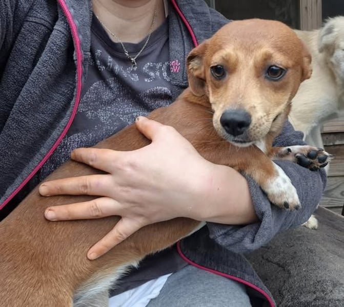 Ich kleines Mädchen wurde am 30.06.2025 eingepfercht mit meinen 2 Brüdern und der Mutter in 2 kleinen Boxen vor der Farm ausgesetzt, wie es so oft hier in Rumänien geschieht. Gottseidank hat uns Eugenia schnell gefunden und in Sicherheit gebracht. Nachdem ich gebadet wurde, habe ich erstmal geschlafen und danach ausgiebig das Futter genossen. Hier auf der Farm bin ich schon mal gut aufgehoben.