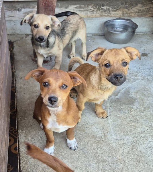 Ich kleiner Rüde wurde am 30.06.2025 eingepfercht mit meinen 1 Bruder, 1 Schwester und meiner Mutter in 2 kleinen Boxen vor der Farm ausgesetzt, wie es so oft hier in Rumänien geschieht. Gottseidank hat uns Eugenia schnell gefunden und in Sicherheit gebracht. Nachdem ich gebadet wurde, habe ich erstmal geschlafen und danach ausgiebig das Futter genossen. Hier auf der Farm bin ich schon mal gut aufgehoben.