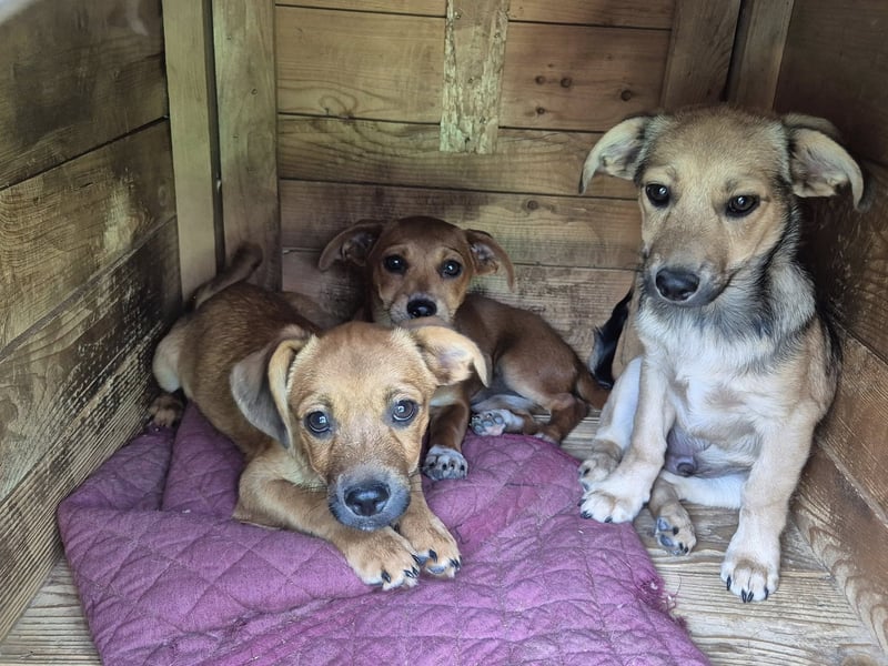 Ich kleiner Rüde wurde am 30.06.2025 eingepfercht mit meinen 1 Bruder, 1 Schwester und meiner Mutter in 2 kleinen Boxen vor der Farm ausgesetzt, wie es so oft hier in Rumänien geschieht. Gottseidank hat uns Eugenia schnell gefunden und in Sicherheit gebracht. Nachdem ich gebadet wurde, habe ich erstmal geschlafen und danach ausgiebig das Futter genossen. Hier auf der Farm bin ich schon mal gut aufgehoben.