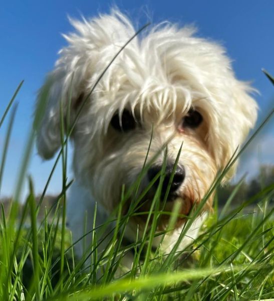 Cookie ist ein kleiner Rüde mit schneeweißem Fell und dunklen Augen. Auf seiner Pflegestelle zeigt er sich menschenbezogen, freundlich und verschmust. Von fremden Menschen möchte er jedoch nicht zu stark bedrängt werden. Besonders orientiert er sich derzeit am männlichen Familienmitglied, kommt aber auch mit Frauen sehr gut zurecht. Trotz seines Alters ist Cookie ein lebhafter Wirbelwind und bellt momentan noch recht häufig – daran wird jedoch bereits gearbeitet.