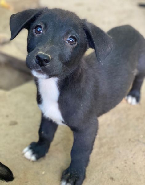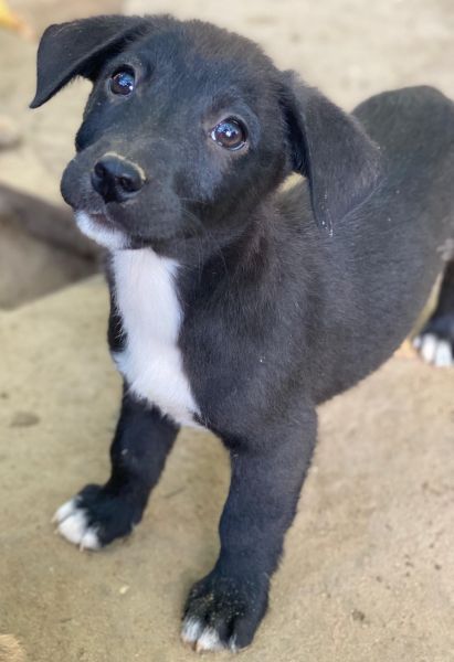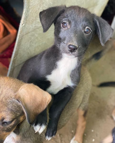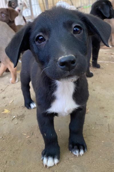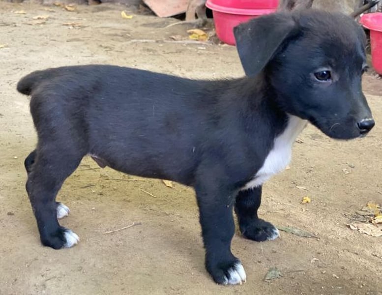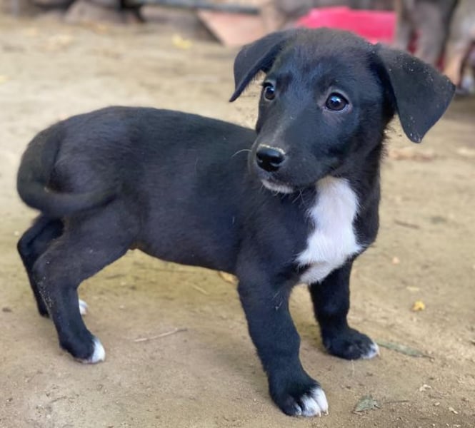 Ein Mitglied der vierköpfigen Rasselbande ist Croissant. Klein und süß ist er auf jeden Fall. Mit seinem schwarzen Fell und den weißen Abzeichen an Brust und Pfötchen macht er optisch einiges her. Ausgewachsen wird der Knirps weiterhin zu den kleinen Hunden gehören. Über einen großen Platz im Herzen seiner neuen Menschen freut er sich aber dennoch.