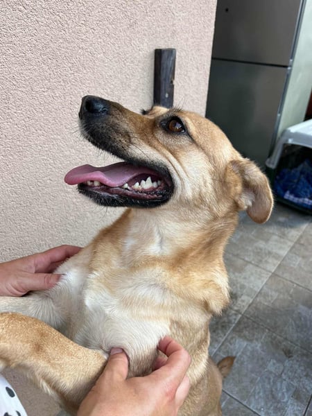 Letty wurde im Mai 2023 humpelnd an einer Landstraße zwischen Péterszeg und Újfalu gefunden. Tagelang irrte sie alleine umher, bis ein freundliches junges Paar sie sichern und zu uns ins Tierheim bringen konnte.
