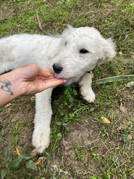 Fanny misst derzeit 38 cm (Stand 26. September 2025). Sie ist eine liebe, aufgeschlossene Hündin, die ihre Umwelt neugierig erkundet und sich sehr über menschliche Nähe freut.