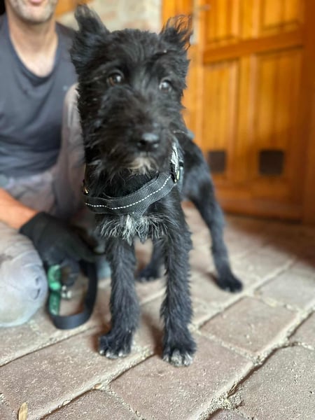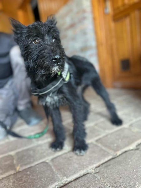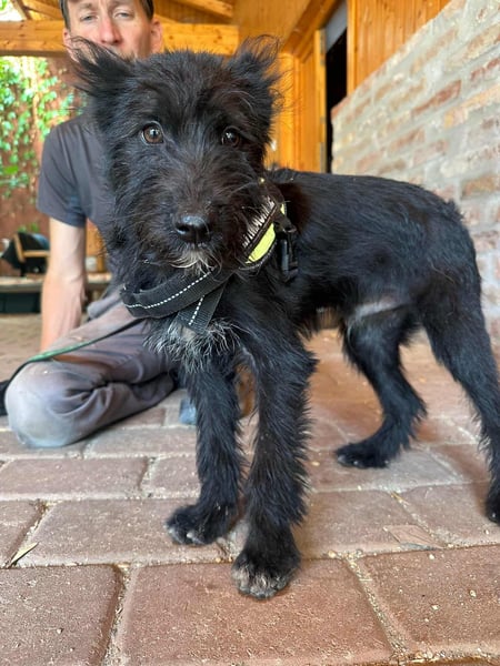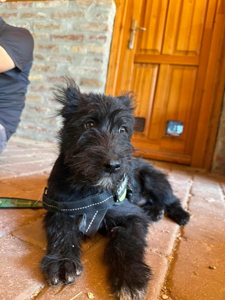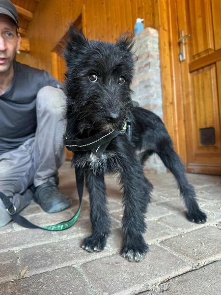 Mit anderen Hunden versteht er sich wunderbar, geht bereits gut an der Leine und beobachtet die Welt mit großen, staunenden Augen.