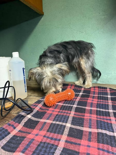 Kaum zu glauben, aber Bolyhos stammt aus demselben Wurf wie seine drei Geschwister Málna, Eper und Hópihe. Während seine Schwestern an kleine, neugierige Foxterrier erinnern, zeigt Bolyhos – wie auch sein Bruder Hópihe – viele Züge eines Yorkshire Terriers: sanft, anhänglich und zutiefst menschenbezogen.