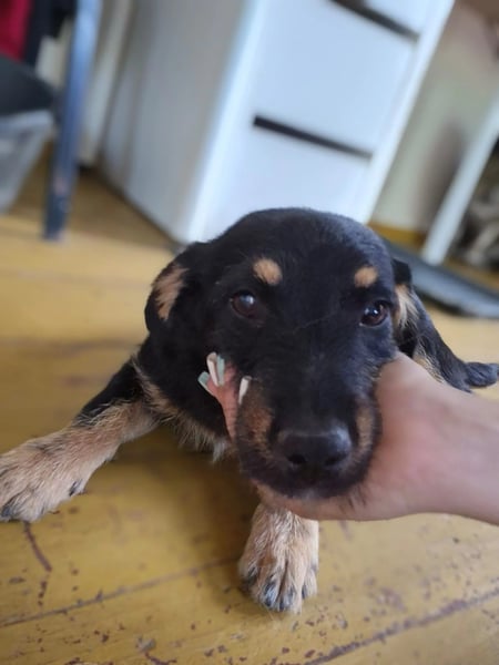 Fenja wurde im Juni 2025 zusammen mit zwei weiteren Welpen im Tierheim Therapy Dogs and Cats aufgenommen. Ihre Geschichte beginnt in einem Wald, wo sie von einem tierlieben Mann gefunden wurde, der nicht wegsah. Mit seiner Unterstützung konnten wir Fenja medizinisch versorgen, impfen und in Sicherheit bringen.