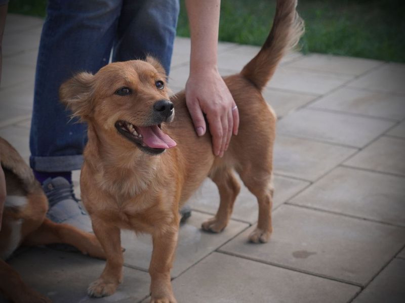 Liebe, Vertrauen, Fürsorge, Zärtlichkeit, Anhänglichkeit, Spaß und das wunderbarste Sozialverhalten alles zusammen hat einen Namen: Emmeline. Freudig und neugierig schwanzwedelnd kommt die hübsche Emmi mit ihrem rötlich-braunen Fell auf den Menschen und auf andere Artgenossen zu. Sie ist ein überaus freundlicher, immer gut gelaunter, verspielter Schatz. Am besten wird ihr wundervoller Charakter dadurch beschrieben, wie Emmeline aufgefunden wurde.
