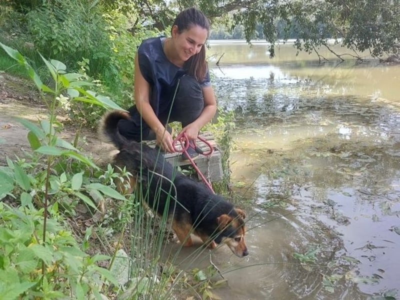 Auch andere Hunde sind nicht mehr ganz so gruselig für dich. Wenn ‚deine‘ Menschen dabei sind und dir helfen, kannst du schon recht gut mit ihnen umgehen. Aber was du machen musst, wenn sie aufdringlich werden, weißt du noch nicht. Doch das wird schon, wenn du weiter fleißig übst. Kannst du dich noch erinnern, wie es war, als du zum ersten Mal an der Leine laufen solltest? Ja genau, du bist umhergesprungen wie Rumpelstilzchen. Tagelang. Wochenlang. Und heute? Ja heute ist das kein Problem mehr für dich. Du hast gelernt, dass die Leine bedeutet, es geht zum Spaziergang, raus aus dem Tierheim und auf die schöne Wiese oder sogar an den Fluss.