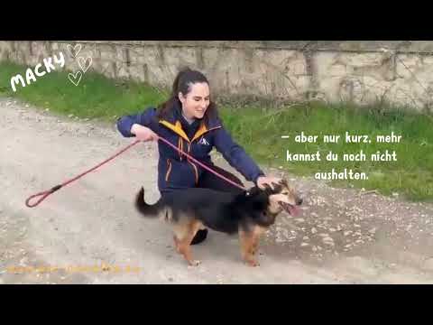 Update Mai 2024 - Hallo Macky, kleiner Schatz, erinnerst du dich noch? Wir haben uns getroffen, als du bei uns angekommen bist, und du wolltest von niemandem irgendwas wissen. Alle waren gefährlich für dich, Menschen, Hunde, einfach alles. Das ist lange her und du hast inzwischen schon so viel gelernt, obwohl wir immer nur eine halbe Stunde am Tag Zeit für dich haben. Heute freust du dich schon, wenn die Menschen, die du kennst, zu dir kommen. Dann kommst du von ganz alleine angelaufen und bist gerne mit ihnen zusammen. Du lässt dir Sachen von ihnen beibringen und machst schon richtig mit, wenn sie dir etwas Neues zeigen. Sogar auf Leute, die du gar nicht kennst, gehst du manchmal schon neugierig zu und sie dürfen dich ein kleines bisschen streicheln – aber nur kurz, mehr kannst du noch nicht aushalten.