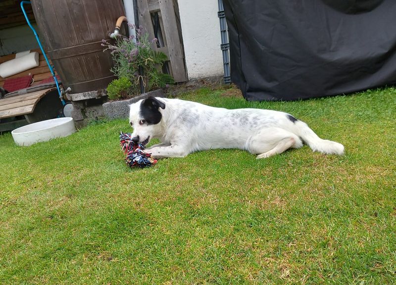 Sunny ist eine freundliche, verschmuste, kleine Hündin, die Menschen liebt. Besuch im Haushalt wird freundlich begrüßt. Sunny lässt sich gerne streicheln und passt sich schnell in den Alltag ihres Zuhauses ein. Im Haus hält sie sich gerne in der Nähe ihrer Menschen auf. Sie macht nichts kaputt und kann stundenweise alleine bleiben. Dort wartet sie ruhig in ihrem Korb auf die Rückkehr ihrer Menschen. Unerschrocken und neugierig geht sie auf neue Situationen zu. Ihre Hobbys sind: sich genüsslich auf dem Teppich räkeln, morgens in ihrem Korb ausschlafen, nach Mäuselöchern suchen und danach buddeln. Sie geht gerne spazieren und beobachtet genau ihre Umgebung. Bei Hundebegegnungen entscheidet die Sympathie. Im Moment lebt sie problemlos mit einem großen Rüden zusammen, den sie gerne zu Rennspielen auffordert. Sunny kennt ihren Namen schon gut, stellt allerdings ihre Ohren manchmal auf Durchzug, wenn anderes interessanter ist. Der Besuch einer Hundeschule und das Erlernen von Tricks würden ihr bestimmt Freude machen.