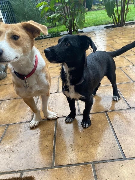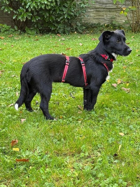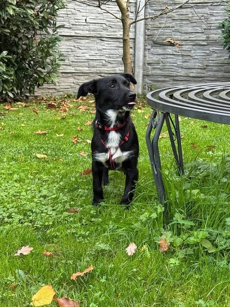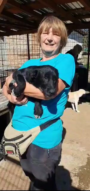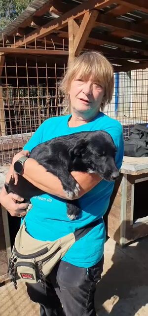 Die 7 Monate junge Püppi ist eine schwarze Schönheit mit weißen Pfotenspitzen, einem weißen Fleck auf der Brust weißer Schwanzspitze. Erst einmal war viel schlafen angesagt, jetzt wird die große weite Welt erkundigt. Das Geschirr anlegen und warten vor der Haustür hat sie schnell gelernt. Auch die Geräusche im Haus und draußen werden mit Bravour gemeistert. Sie läuft schon perfekt an der Leine, an der Stubenreinheit wird zur Zeit noch gearbeitet. Püppi schläft nachts brav mit den anderen Hunden in Ihrem Körbchen, was für Sie überhaupt kein Problem ist.