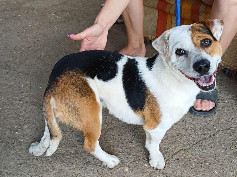 Rein optisch wird vermutet, dass sich ein Jack- Russell- Terrier unter meine Vorfahren gemischt hat... denn mit meinen bunten Flecken komme ich dem schon sehr nahe und es passt auch ein bisschen zu meinem Wesen ... Hans Dampf in allen Gassen ... Aber wie das bei Streunern so ist... alles ist möglich ...