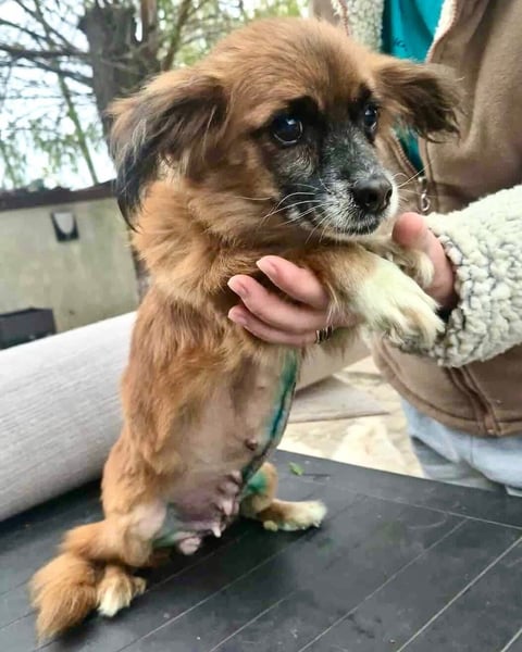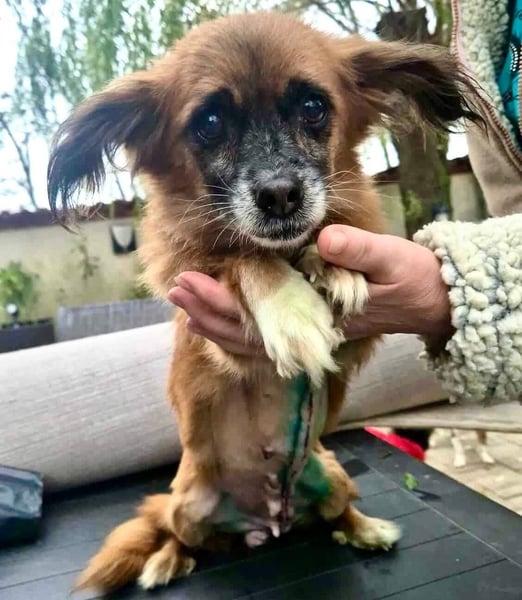 Als mein Besitzer verstorben ist, wurden meine Hundefreundin und ich an die Kette gelegt und bekamen unser weniges Essen aus einem schmutzigen Topf. Die Kette war so kurz, dass wir uns nicht wirklich die Beine vertreten konnten. Dann wurden wir beide gerettet. Ich musste operiert werden, denn ich hatte einen Tumor an der Gesäugeleiste. Aktuell befinde ich mich in einer Not-Pflegestelle, nahe Bukarest, wo ich mich von der OP erholen darf. Obwohl ich es hier ganz schön finde, kann ich hier leider nicht bleiben und ich brauche unbedingt eine liebevolle Familie.