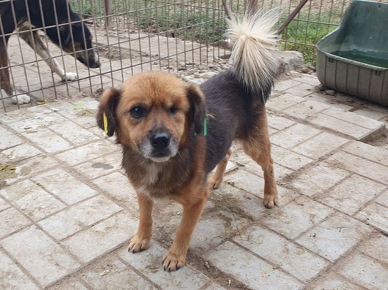 Spirelli ist ein ruhiger, verschmuster kleiner Rüde, der vor allem eins sucht: Nähe und Geborgenheit. Mit seinem flauschigen, braun-schwarzen Fell und der sanften Ausstrahlung schließt man ihn sofort ins Herz. Bei unserem Besuch kam er sofort aktiv auf uns zu und saß lange bei uns auf dem Schoß, ließ sich ausgiebig streicheln und schien die Nähe regelrecht aufzusaugen. Sein linkes Auge musste entfernt werden – das schränkt ihn aber überhaupt nicht ein. Alles ist gut verheilt und es benötigt keine besondere Pflege. Er ist ein durch und durch lieber, sanfter Hund, der sich sehr an seinen Menschen binden wird. Spirelli ist der perfekte Begleiter für ein ruhiges Zuhause, wo er endlich zur Ruhe kommen darf, und die Liebe bekommt, nach der er sich so sehr sehnt. In seinem gemischten Rudel ist der kleine Spirelli durchweg verträglich und immer mittendrin.