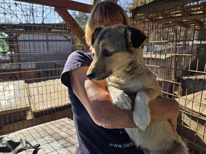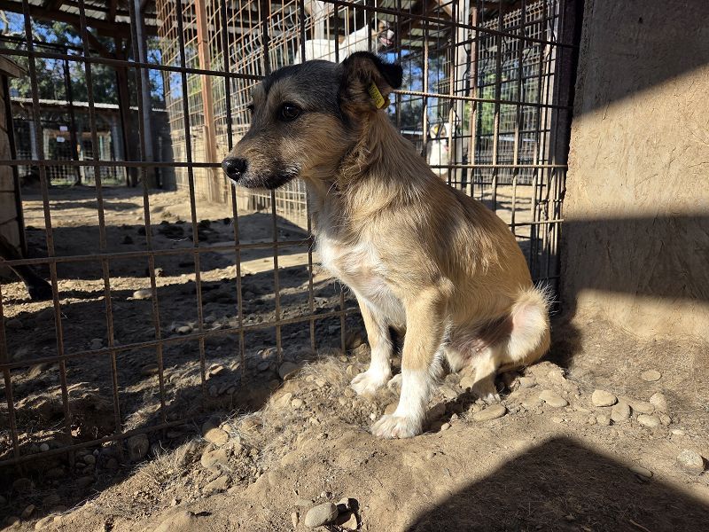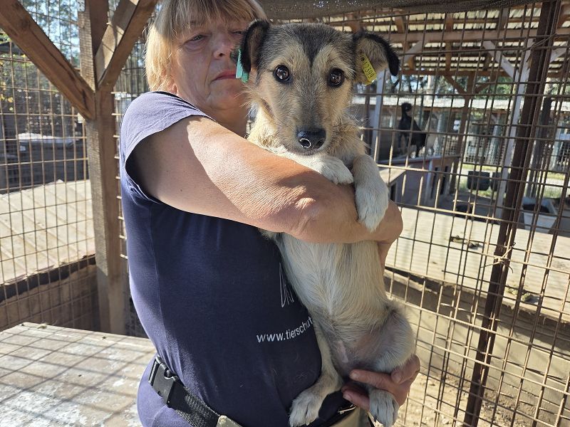 Peppi ist gerade mal rund 30 cm klein – zart, mit weichem Drahthaar in cremefarbenen, leicht gestromten Tönen. Ihre weißen Beine und die helle Brust geben ihr ein besonders liebliches Aussehen. Leider merkt man ihr den fehlenden Menschenkontakt schon deutlich an. Menschen gegenüber ist sie noch sehr unsicher und hält lieber etwas Abstand. Als wir ihren Zwinger betraten, ließ sie sich in eine Ecke drängen, ohne Abwehr zu zeigen – man spürte ihre Unsicherheit, aber auch, dass sie sich nicht wehren wollte. Wir konnten sie schließlich vorsichtig auf den Arm nehmen. Dabei blieb Peppi ruhig, auch wenn man ihre Anspannung deutlich merkte. Dass sie diesen Moment zuließ, ist ein großer Schritt für sie – ein Zeichen, dass sie beginnt, Vertrauen zu fassen. Die kleine Maus hat viel Potenzial in sich und verdient ein Leben in Freiheit und Sicherheit. Für diese kleine, sanfte Hündin suchen wir ein ruhiges, liebevolles Zuhause mit Menschen, die Geduld haben und ihr die Zeit geben, sich langsam zu öffnen. Mit Verständnis und Zuneigung wird sie eines Tages erkennen, dass Nähe nichts Bedrohliches, sondern etwas Wunderschönes ist.